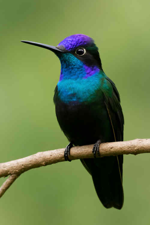 Der Violettkron-Brillantkolibri fällt unter den Kolibris durch seine ungewöhnlich große Körpergröße auf – mit bis zu 13,5 cm Länge zählt er zu den größten Vertretern dieser Familie. Die leuchtend violette Stirn und Krone der Männchen sind nicht nur ein optisches Schmuckmerkmal, sondern spielen auch bei Revierkämpfen und Balzverhalten eine wichtige Rolle: Männchen präsentieren diese auffällige Färbung gezielt, um Rivalen zu beeindrucken oder abzuschrecken. Früher wurde die Art gemeinsam mit dem Glitzerbrillantkolibri (*Eugenes spectabilis*) als eine Art betrachtet. Erst neuere genetische Untersuchungen führten zur Aufspaltung in zwei getrennte Arten. Auffällig ist auch das ausgeprägte Territorialverhalten der Männchen während der Blütezeit bestimmter Pflanzen. Sie besetzen bevorzugt blütenreiche Hanglagen und verteidigen diese energisch gegen andere Kolibris. In höheren Lagen kann man die Art besonders gut an reich blühenden Agaven beobachten, wo sie regelmäßig patrouilliert und Nahrungskonkurrenten vertreibt.